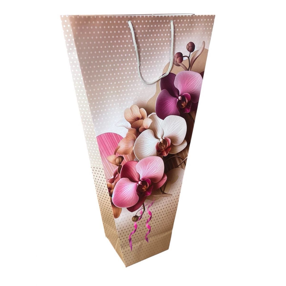 Подарункові пакети під орхідеї ідеально підходять для будь-яких горщикових рослин та квітів. Основне їх призначення це транспортування та презентація кінцевому адресату. Орхідея або будь яка висока квітка або рослина поміщена у подарунковий пакет - набуває гарного ви